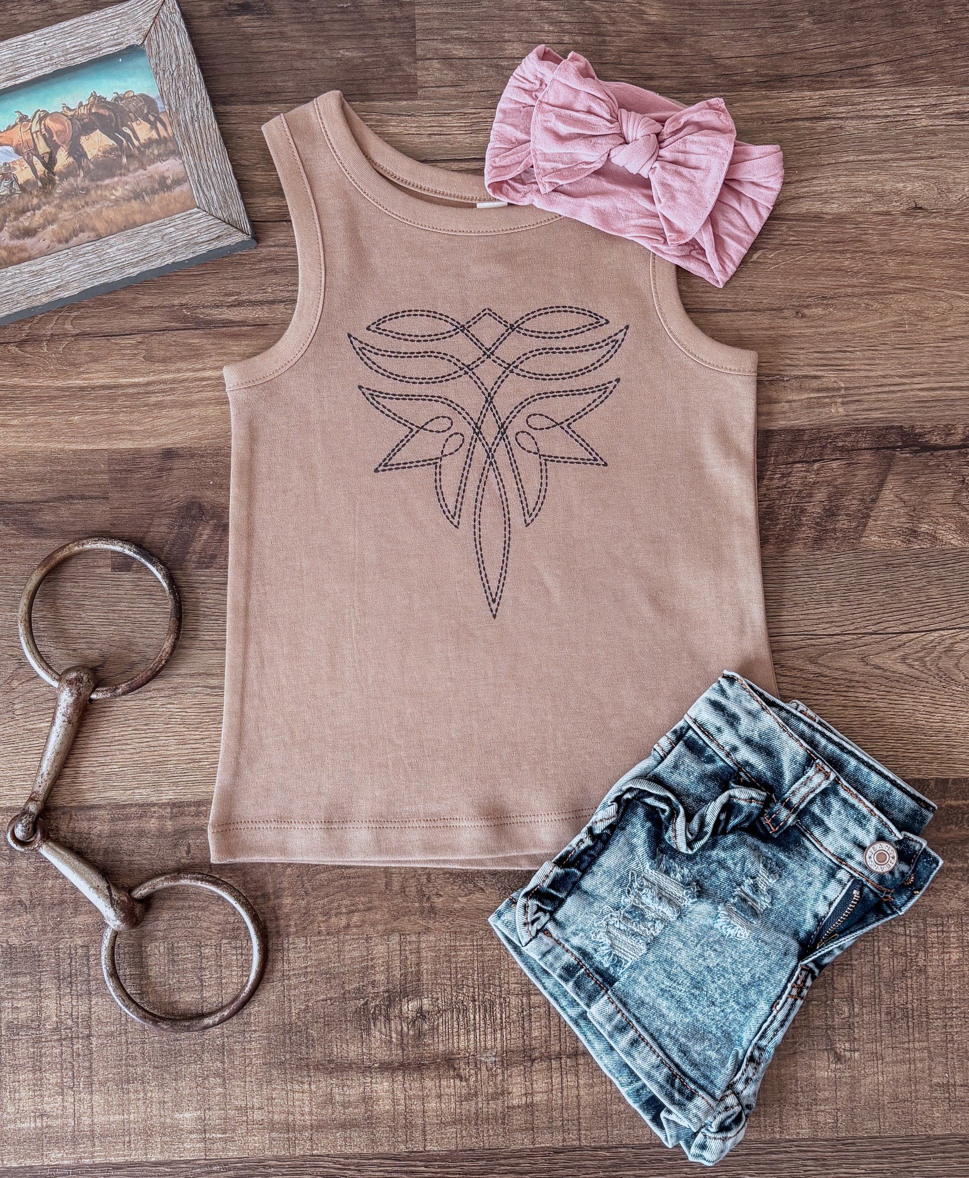 Cowgirl Boot Stitch Tank (18-24M, 3T) - Truffle