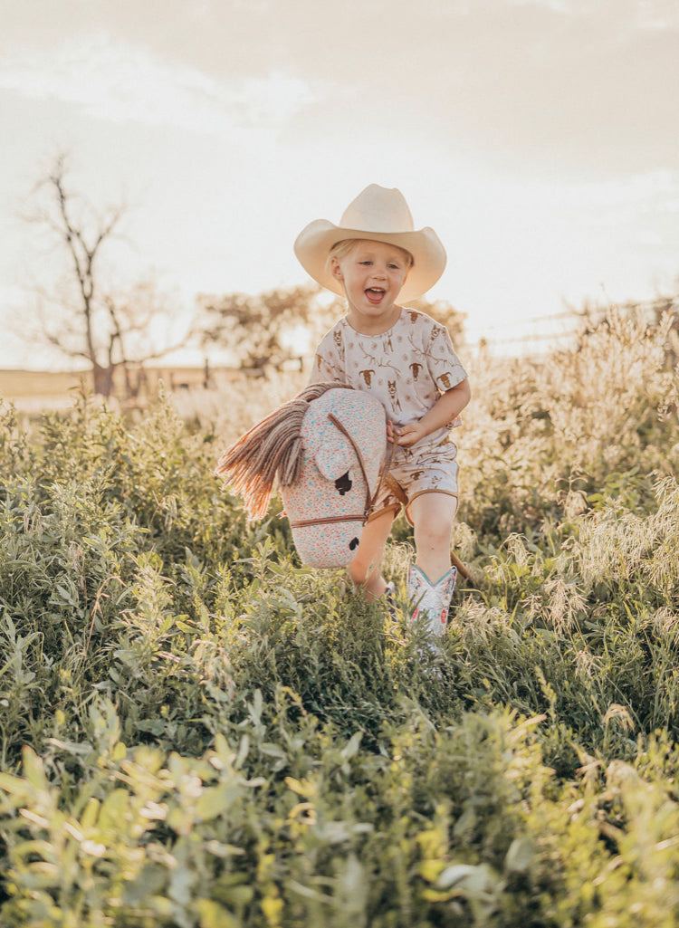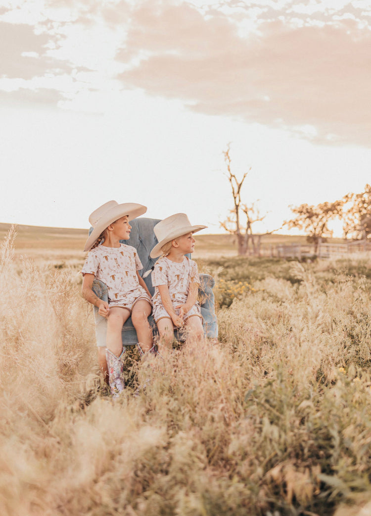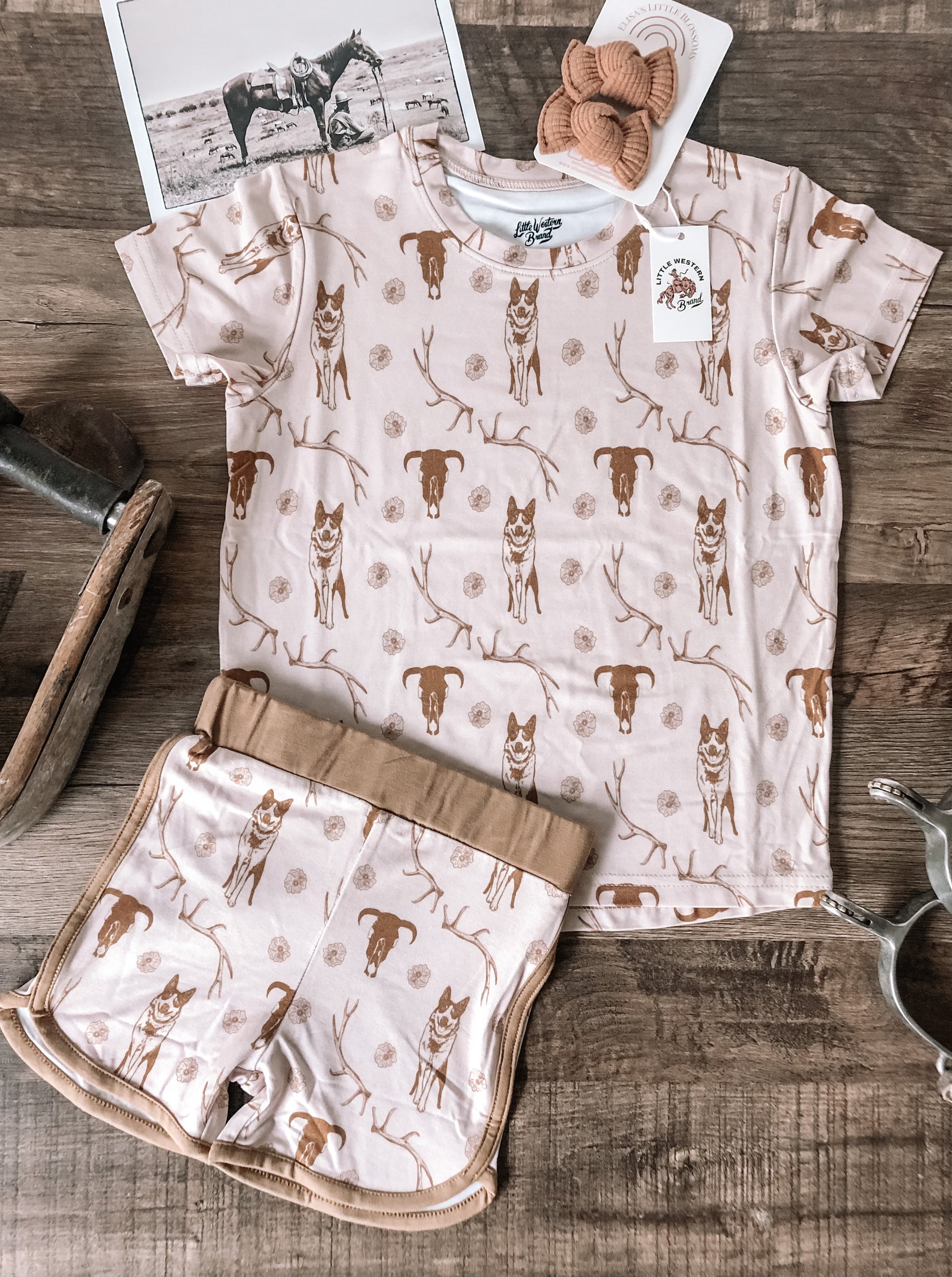 Cow Dogs & Antlers Bamboo T-Shirt and Shorts Set (Toddler & Youth) - Tan