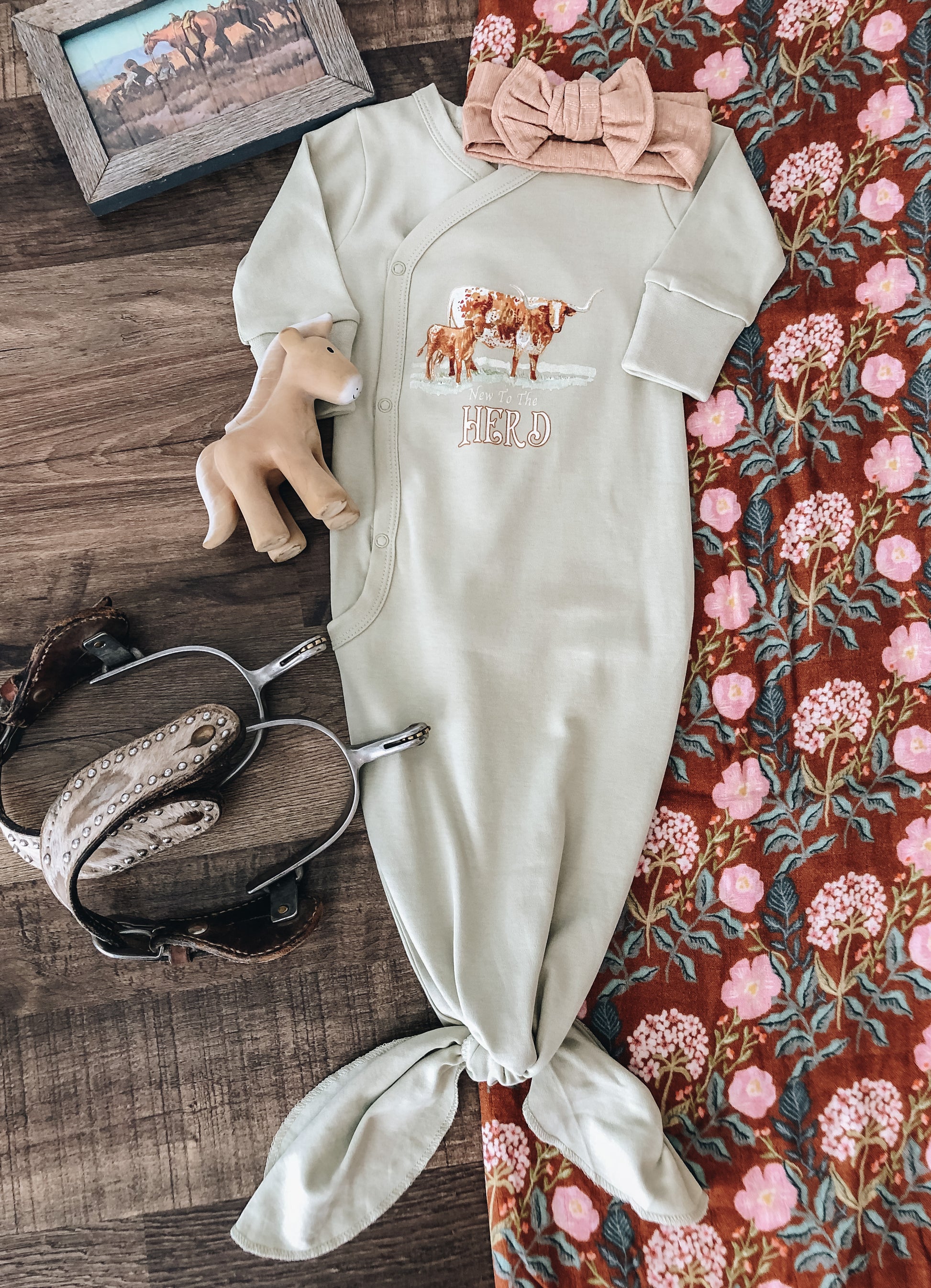 New to the Herd Longhorn Kimono Infant Gown - Sage