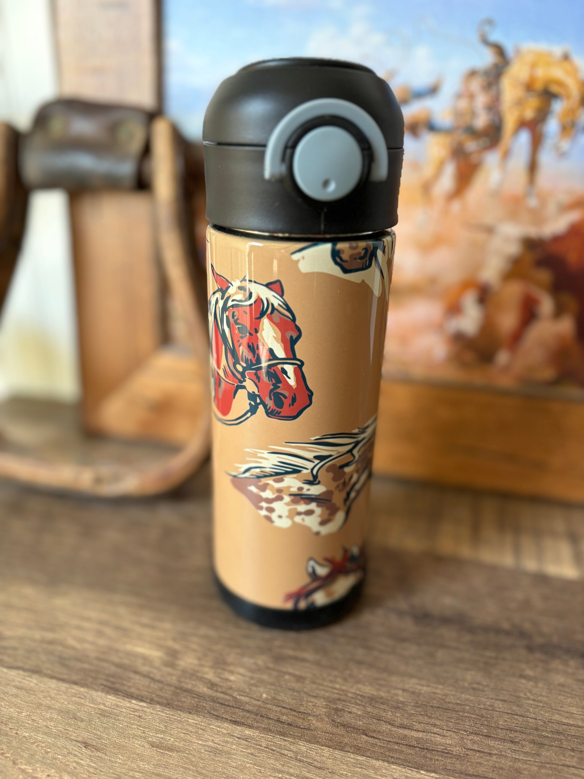 Horse Heads design printed on a stainless steel kids cup with built in straw.