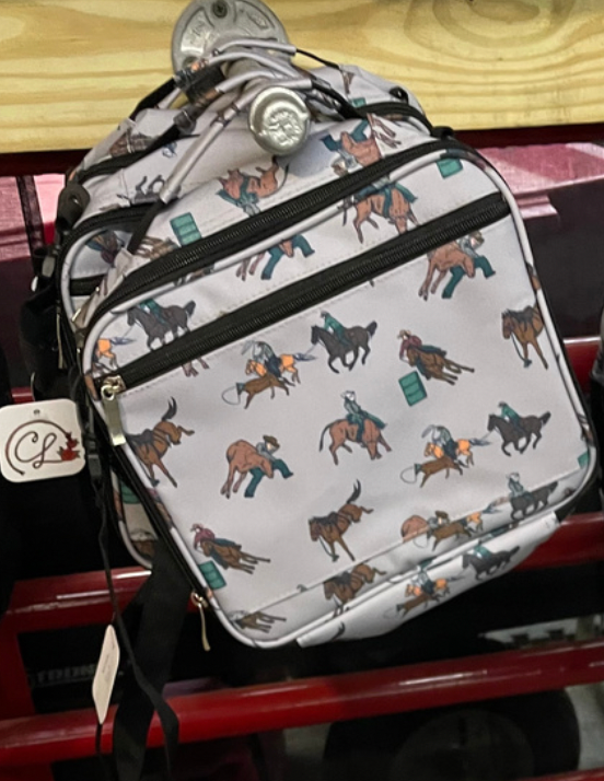 Send your little ones back to school in style with this adorable rodeo event backpack and lunchbox.